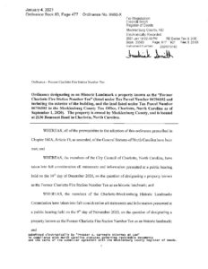 Former CLT Fire Station No 10 Ordinance